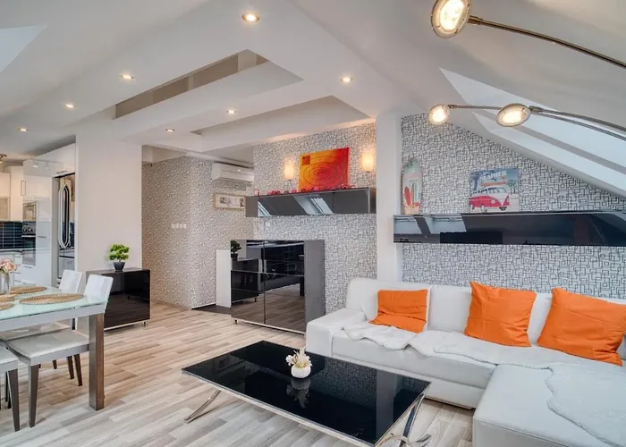 Den här 120 m² stora lägenheten ligger i distriktet Ruzinov, inom 5 km från Kamzik, TV-tornet. Sevärdheterna inkluderar Nationella tenniscentret NTC, på gångavstånd från lägenheten.